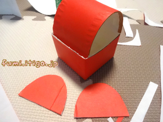 2、フタになる部分を、側面部分に合わせて長さを調節して切る。