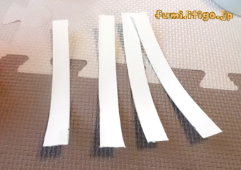 牛乳パックを細く(1㎝弱)切り、4枚を重ねて、金の折り紙で包む。